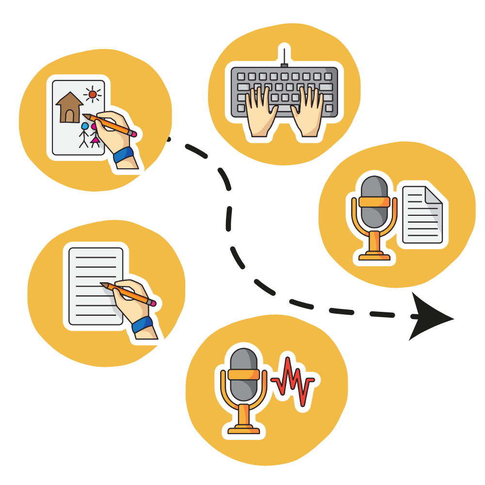 Get to know the five methods students produce writing: drawing, handwriting, typing, voice recording, and speech recognition.