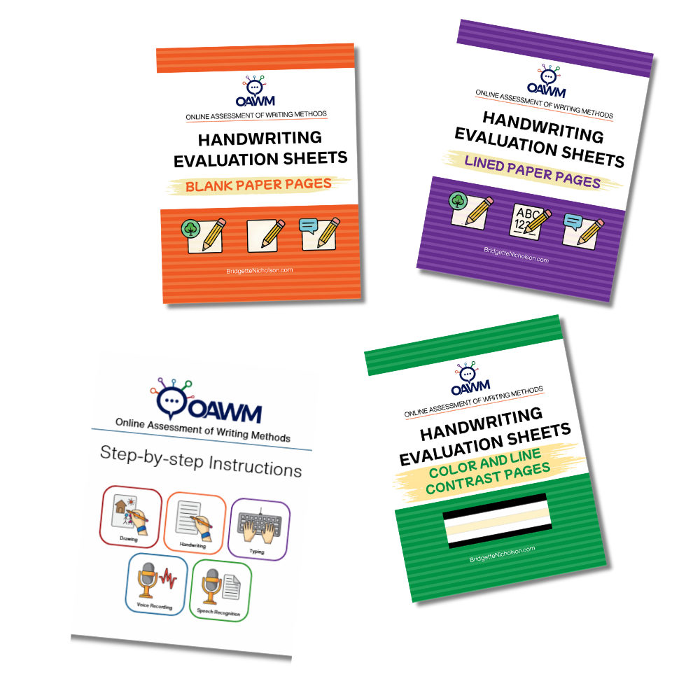 Step-by-step videos + instruction PDFs for evaluating the five writing methods (drawing, handwriting, typing, voice recording, speech-to-text)
