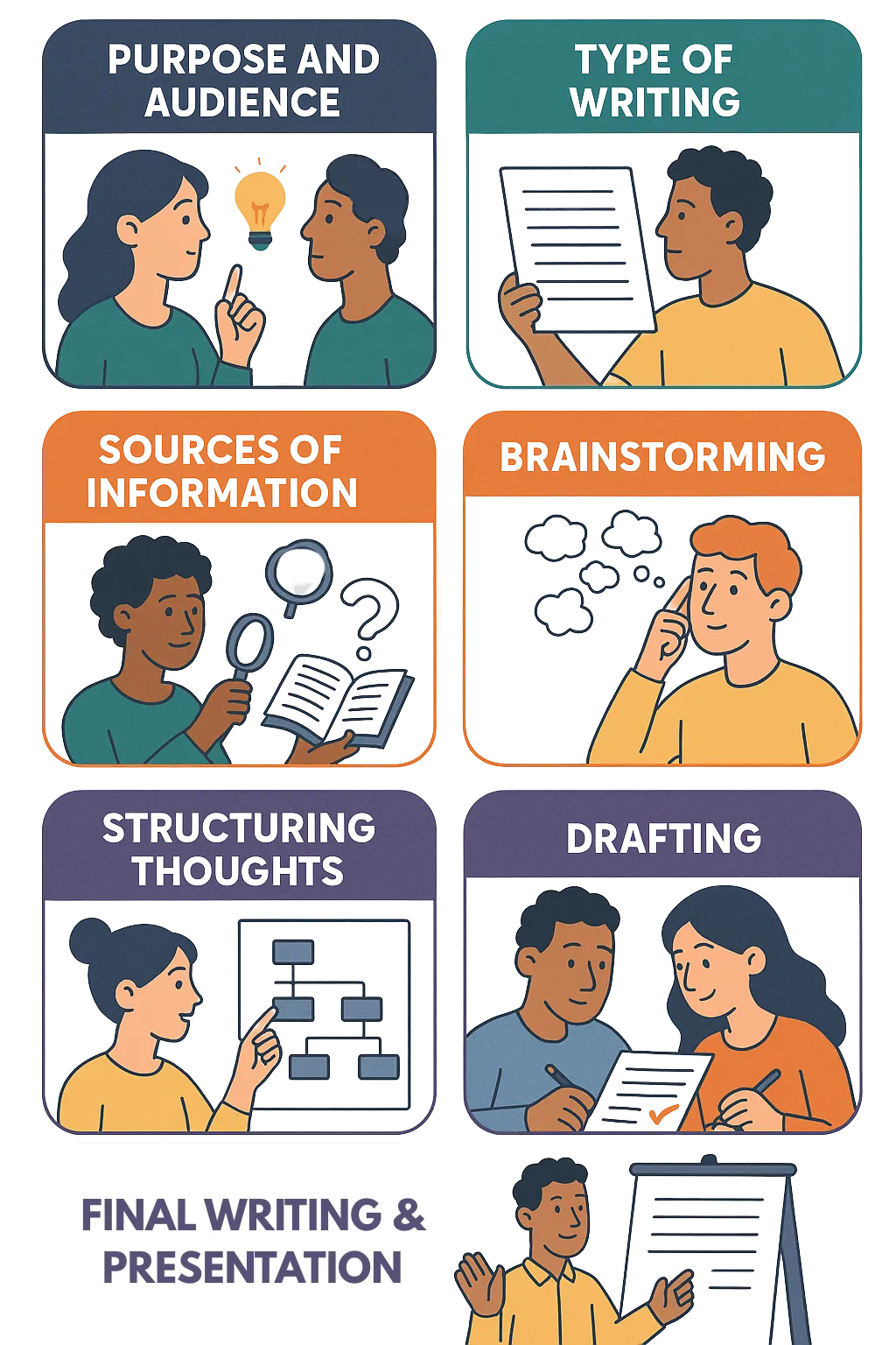 Highlights how sensory, motor, cognitive, and social foundations are essential not only to readiness but also to the willingness to write. It integrates big-body brainstorming, social collaboration, and discussion-based strategies to make writing an active, engaging, and shared process.